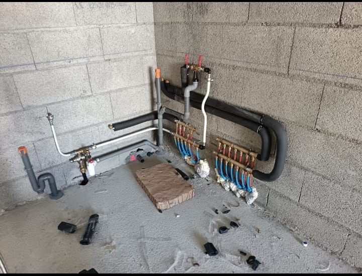 Réseaux, chauffe-eau, sanitaire et interventions réelles avant les rendus finis.